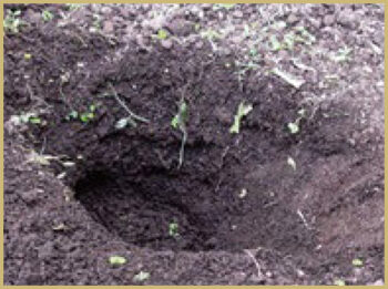 ② 守りたい場所の中央付近に深さ20cmの穴を掘る