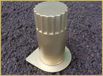 ③ 地表台座が地面と水平になるように本器を埋め、土と密着するように地表面を押さえる(電池ボックスは垂直の状態)